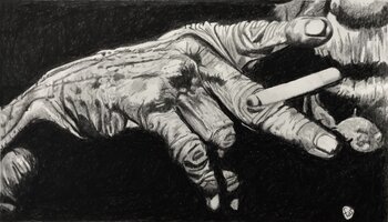 In dieser realistischen Zeichnung wollte ich die Tiefe und den Charakter einfangen, die die Zeit den Händen verleiht. Jede mit Bleistift gezeichnete Linie und jeder Schatten vermittelt Geschichte, Arbeit und Widerstandsfähigkeit. Das Bild lädt zum Nachdenken über das Leben und seine flüchtigen Momente ein und erfüllt den Raum mit einer intensiven Energie, die mit der alltäglichen Realität und der Menschlichkeit verbunden ist.