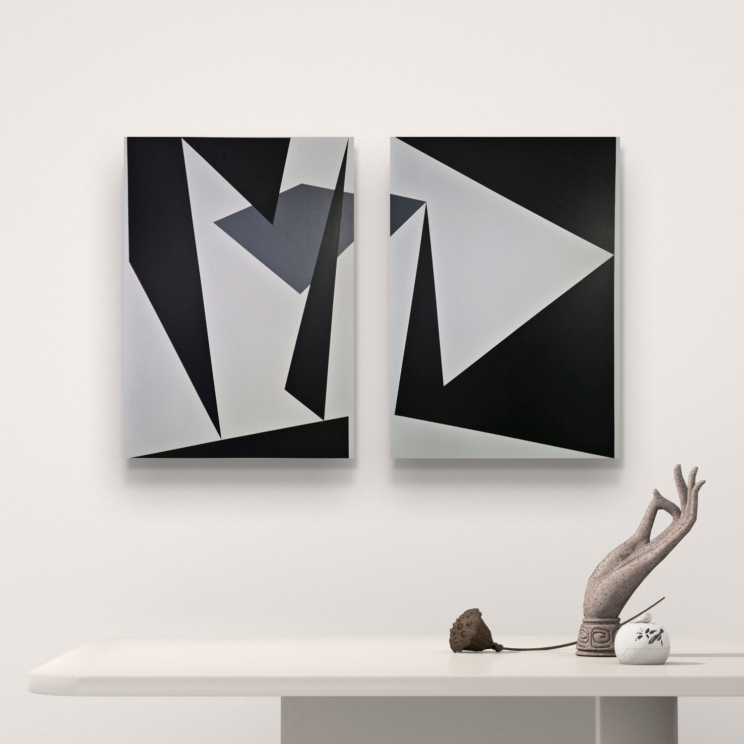 Mit dieser Arbeit wollte ich das Zusammenspiel von Formen und Schatten im geometrischen Stil erkunden. Durch den Einsatz von Acrylfarben schuf ich ein dynamisches Zusammenspiel trapezförmiger Figuren, die sich auf der Leinwand zu bewegen und zu tanzen scheinen. Jeder Winkel und jeder Grauton lädt zum Nachdenken und Entdecken der Balance und Spannung zwischen den Elementen ein. Dies ist nicht nur ein Gemälde; es ist ein visueller Dialog, der jeden… Raum mit seiner energetischen und modernen Präsenz bereichert.
