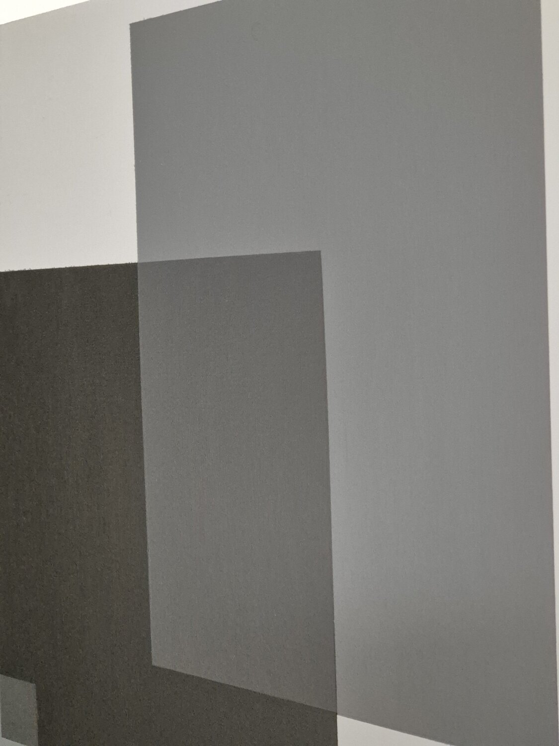 Arbeit in Acryl in Grautönen mit Details in Gelb, Ocker und Grün gemalt.