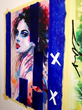 « Ich liebe es, mit unserem künstlerischen Duett den Tanz unserer Pinsel zu spüren, begleitet von fantasievoller, farbenfroher Musik auf unserer Bühne, die eine Leinwand ist. »