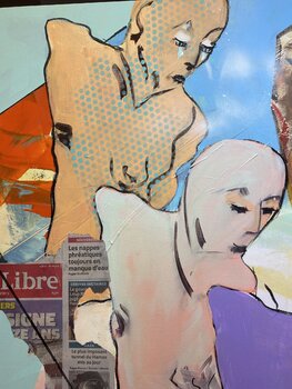In dieser Arbeit habe ich die Komplexität menschlicher Emotionen durch Abstraktion und Expressionismus erforscht. Mit Acryl, Kreide und Tinte habe ich ätherische Figuren eingefangen, die im Dialog miteinander zu stehen scheinen, wobei jede Farbe und jeder Strich eine andere Facette der menschlichen Erfahrung widerspiegelt. Die Elemente der Zeitungscollage führen eine Textdimension ein, die unser Verhältnis zu Medien und Informationen hinterfragt.… Lebendig und dynamisch inspiriert dieses Gemälde zum Nachdenken und Gespräch in jedem Wohnraum.