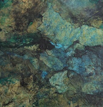In diesem Werk habe ich intuitiv Öl, Collage und Tusche miteinander verbunden, um die geheimnisvollen Tiefen der Seele und innere Landschaften zu erwecken. Blau- und Grüntöne verschmelzen mit Energie und laden zu einem intensiven sinnlichen Erlebnis ein. Es verleiht Ihrem Raum eine beruhigende und geheimnisvolle Atmosphäre – eine Einladung zum Träumen und Nachdenken.