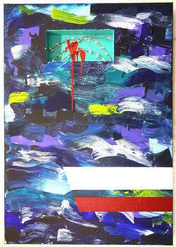 Werk auf Holz. Kann direkt aufgehängt werden. Rahmung auf Anfrage.