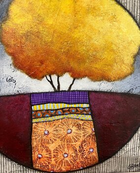 Gefesselt vom Licht und den Formen der Natur, die sie umgeben, wartet Géraldine mit Freude auf die visuelle Liebe auf den ersten Blick und lässt sie reifen, um nur noch die Erinnerung zu transkribieren. Lassen Sie ihn vor seiner Werkstatt, der Landschaft, den Weinreben, den Bäumen mit dem Wind, den Samen, dem Gesang der Vögel, den Farben der Jahreszeiten usw. tanzen.… Eine Inspiration, die von der Erde, von der Natur kommt. Géraldines Gemälde sind farbenfroh, leuchtend, funkelnd und fröhlich. Für jedes ihrer Werke verwendet sie unterschiedliche Techniken.