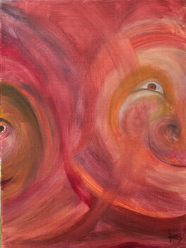 In diesem Werk wollte ich den Augenblick einfangen, in dem sich zwei Blicke in einem Wirbelwind der Ungewissheit über die Absichten von Seele und Körper begegnen. Die Intensität menschlicher Emotionen wird durch dynamische Formen und leuchtende Farben spürbar. Ölfarbe ermöglicht es mir, die Tiefe und Komplexität dieser Blicke auszudrücken. Sie erlaubt mir auch, die Vielfalt der Gefühle zu erforschen: Aufrichtigkeit, Hoffnung, aber auch die Angst… vor oder die Angst vor Täuschung. Dieses Gemälde wird Ihrem Zuhause eine lebendige Energie verleihen, eine Einladung zur Selbstreflexion und zu geteilter Sensibilität.