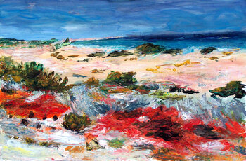 In diesem lebendigen, halbabstrakten Acrylgemälde habe ich die wilde und ungezähmte Essenz einer Küstenlandschaft eingefangen. Die energischen Pinselstriche und kräftigen, ausdrucksstarken Farben vermitteln ein Gefühl von Freiheit und der dynamischen Schönheit der Natur. Dieses Werk soll eine lebendige und inspirierende Energie in jeden Raum bringen und den Betrachter an die rohe, ungeschliffene Pracht der Natur erinnern.