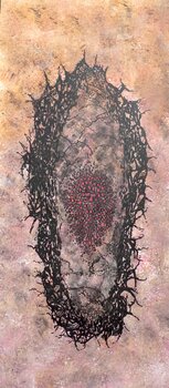 Werk auf Holz. Kann direkt aufgehängt werden. Rahmung auf Anfrage.