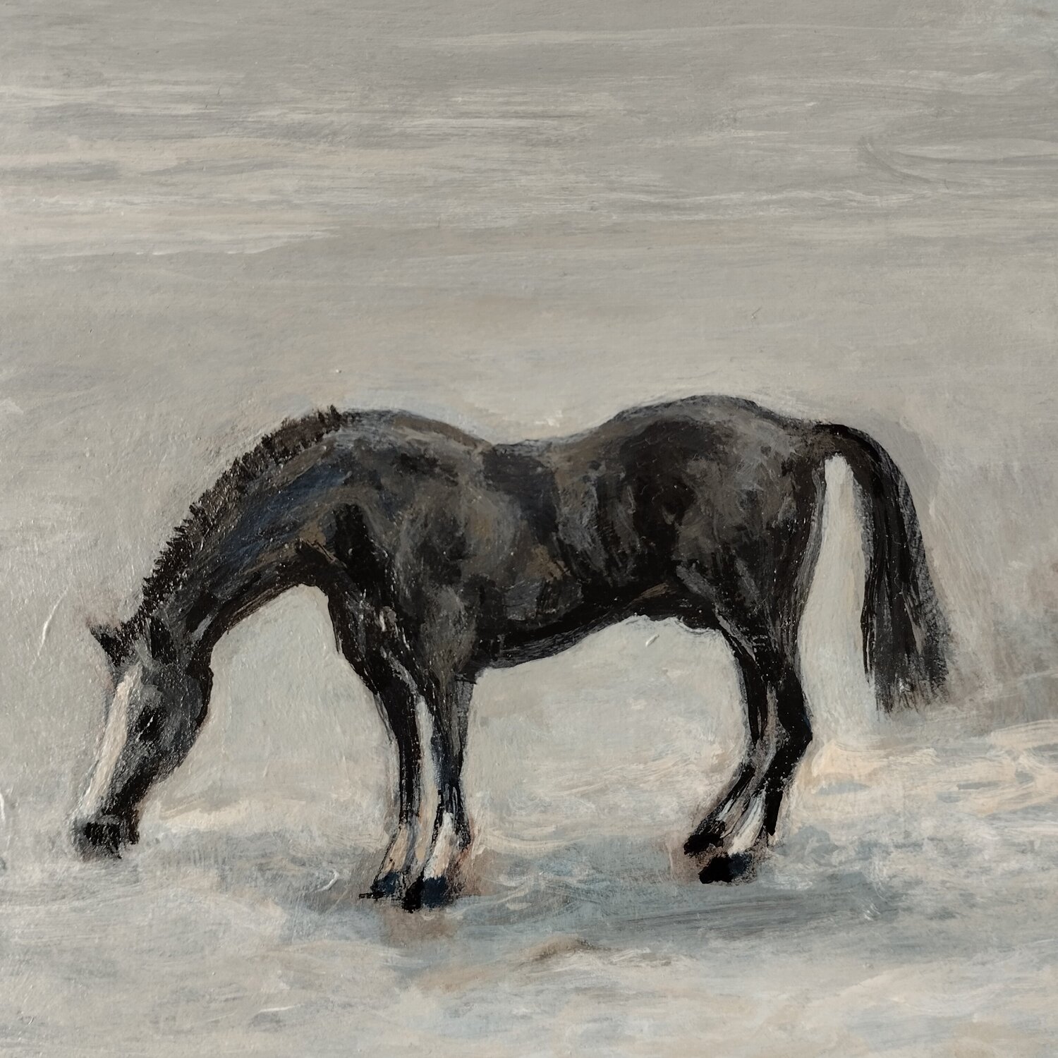 In diesem Bild habe ich versucht, die Schönheit eines frühen Wintermorgens auszudrücken. Der Mann im Hintergrund gleitet auf dem Schnee. Pferd und einsamer Baum erzeugen eine melancholische Stimmung.