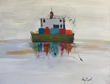 In dieser Arbeit habe ich Acryl und Emaille verschmolzen, um die Essenz eines Ortes einzufangen, der mich schon immer fasziniert hat. Mit ausdrucksstarken Pinselstrichen und einem halbabstrakten Stil versuche ich, die Ruhe und Nostalgie hervorzurufen, die entsteht, wenn man einem einsamen Boot zusieht, das auf ruhigen Gewässern schwimmt. Seine Reflexion stellt eine Verbindung zwischen Realität und Träumen her und lädt den Betrachter zu einer introspektiven… Reise ein. Jedes Element wurde sorgfältig ausgewählt, um trotz der scheinbaren Ruhe der Szene Emotionen und Bewegung zu vermitteln. Dieses Gemälde wird jeden Raum mit dynamischer Gelassenheit und kontemplativer Tiefe erfüllen.