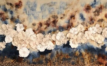 Der Wechsel der Jahreszeiten gibt dem Künstler viel Inspiration. Frühlingsblumen wie Kirschblüten, Tulpen, Glyzinien usw. stehen für Erneuerung, Wachstum. Der Winter ist vorbei, die Dunkelheit und das Licht kommen, der Frühling. Alles beginnt wieder zu wachsen und zu blühen.… Diese Arbeit aus Wolle hat eine isolierende Wirkung