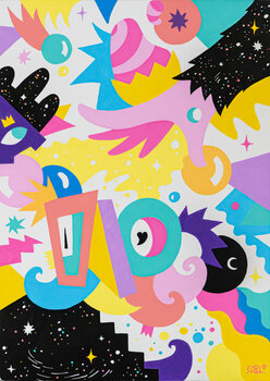 In dieser Arbeit habe ich die Lebendigkeit des Daseins durch kräftige geometrische Formen und leuchtende Farben eingefangen und dabei naive Kunst und Kunst der Aborigines vermischt. Jeder Pinselstrich trägt Acryl-, Gouache-, Graffiti- und Filzstiftmarkierungen und schafft so einen fesselnden visuellen Dialog zwischen überlieferter Symbolik und zeitgenössischer Spontaneität. Diese Leinwand wird zu einem Brennpunkt der Energie und Fröhlichkeit werden… und die Fantasie und Lebensfreude derjenigen wecken, die sie willkommen heißen.