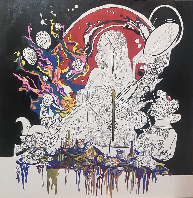 Guillaume Maes, Zeichner und Maler, erkundet die Kunst durch Plexiglas und Leinenleinwände und geht mit Öl mit angeborener Virtuosität um. Seine Techniken offenbaren eine Welt, in der das Unsichtbare Gestalt annimmt und durch das Spiel von Spiegeln und fühlbaren Texturen Leben und Erleichterung erlangt. Seine Werke, wahre multidimensionale Reisen, wecken eine Kontemplation über Abwesenheit und Licht und laden uns ein, den himmlischen Raum jenseits der Schatten wahrzunehmen. Mein Stil zielt darauf ab, die Entwicklung der Seele zu unterstützen. Mystische Themen mit der Leichtigkeit des Pop behandeln. Ich habe diesen Stil „Mystical Pop“ genannt.