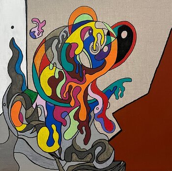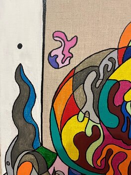 In diesem Werk wollte ich inneres Chaos und die Dynamik der Gefühle durch fließende Formen und leuchtende Farben einfangen. Die Verschmelzung metaphysischer und Pop-Art-Elemente erschafft ein fremdartiges und zugleich lebendiges Universum, das zum Nachdenken anregt. Diese Leinwand verleiht Ihrem Raum eine dynamische und fesselnde Energie – einen Dialog zwischen Verwirrung und intensiver Schönheit.