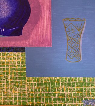 Das war der Grund für die Entstehung einer Kollektion, in der die Formen der Gemälde sowohl klar als auch verschwommen sind. Ich habe dieses Konzept künstlerisch umgesetzt. Farben spielen eine wichtige Rolle in der Kollektion. In der Mitte des Gemäldes habe ich eine schöne Vase mit Blumen platziert. An den Rändern der Gemälde befinden sich unterschiedlich gestaltete, undeutliche Vasen. Für den Hintergrund der Gemälde habe ich verschiedene Techniken verwendet.