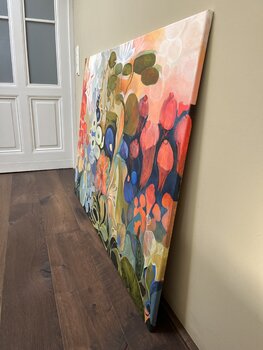 Bei der Herstellung dieses Stücks wollte ich die vergängliche Schönheit der Natur in eine visuelle Symphonie übersetzen. Die fließenden Acrylfarben verschmelzen abstrakte und surreale Elemente und fangen die Lebendigkeit eines blühenden Riffs ein. Es ist eine Hommage an das lebendige Spektrum des Lebens, ein Labyrinth aus Farben und Formen, das jeden Raum, den es schmückt, inspirieren und beleben soll.