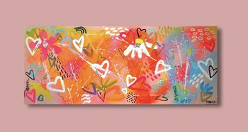 Bei der Schaffung dieser Arbeit wollte ich die Brillanz menschlicher Emotionen und die Spontaneität reiner Gefühle einfangen. Ich habe leuchtende Acrylfarben und Sprays verwendet, um Energie und Leidenschaft zu vermitteln. Warme Farben verschmelzen mit abstrakten Mustern und Herzen und symbolisieren universelle Liebe und Verbundenheit zwischen den Wesen. Dieses Gemälde ist eine Hymne an die Liebe und bringt Freude und Dynamik in jeden Raum, den es… bewohnt.