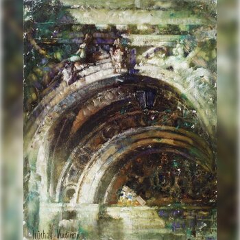 Ich habe meine ganze Seele in dieses Ölgemälde gesteckt und einen majestätischen Bogen voller Schatten und Licht eingefangen. Die strukturierten Pinselstriche atmen Alter und Geheimnis und laden den Betrachter ein, durch die Zeit zu reisen. Dieses Werk strahlt Energie und Eleganz aus und verspricht, jeden Raum in ein Tor voller Wunder und Geschichte zu verwandeln. Es ist eine Hommage an die Schönheit architektonischer Details und die Geschichten,… die sie stillschweigend erzählen.