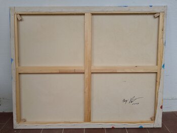 Werk auf Keilrahmen. Kann direkt aufgehängt werden. Rahmung auf Anfrage.