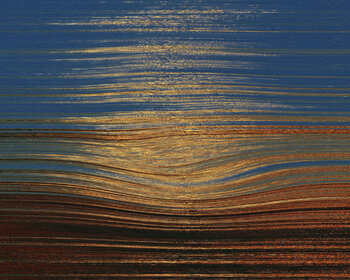 Ein strahlender Sonnenuntergang über einem grenzenlosen Ozean ist das Thema dieses bezaubernden Gemäldes. Der in Rot-, Orange- und Goldtönen gehaltene Himmel spiegelt sich in der ruhigen Glätte des Wassers. In der Ferne sind wie Fata Morganas die Silhouetten von Schiffen zu sehen, die zum Horizont weisen.