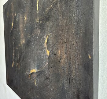Arbeiten beginnen dort, wo Zeit sich verdichtet und Raum zu atmen aufhört. Sie nehmen Spuren auf – Spuren, die nicht von mir allein stammen, sondern aus Berührung, Erinnerung, Resonanz. Bewegung, Stille, Feuer, Asche, Schwelle – sie existieren gleichzeitig und formen einen Raum, der sich immer wieder neu entdeckt. Figurative Momente stehen wie Hebel im Bild: sie sind Kraft, sie sind Fragmente, sie sind Zustände. Sie fordern nicht, sie geben nicht vor – sie öffnen. Es ist ein Raum, in dem Wahrnehmung zum Akt der Entdeckung wird. Die Schichtungen wirken wie Zeit selbst: verdichtet, verdreht, reflektiert. Es ist eine Praxis, die atmet, die sich verschiebt, die Transformation erforscht, die Spannung hält. Wer sich einlässt, tritt in einen Dialog, der weder Anfang noch Ende kennt. Dies ist kein Statement über Werke. Es ist ein Statement mit den Werken. Ein Ort, an dem alles, was war, alles, was ist, und alles, was werden kann, zugleich spürbar wird.