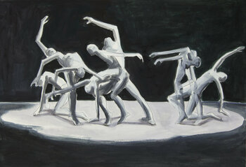 Die Figurengruppen entstehen live aus einer Tanzbewegung eines tanzenden Modells. Die Figuren verschmelzen ineinander und werden so zu Figurengrupren, die eine Dynamik von Bewegung aufgreifen und den Tanz erahnen lassen. Das Licht uns Schattenspiel ist wie bei Nacht wenn der Mond scheint.
