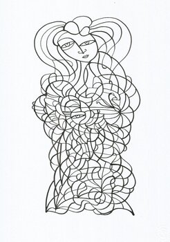 Hier lasse ich die Linien weicher fließen. Die Komposition wirkt getragen, beinahe lyrisch. Motive kehren zurück wie ein Refrain, verändern sich minimal und erzeugen eine sanfte Spannung. Ich sehe dieses Blatt als visuelles Andante: Bewegung und Ruhe halten sich die Waage. Das Gesicht wird zum inneren Klangraum, in dem sich Melodie und Stille begegnen. Musik wird als fühlbare, organische Struktur sichtbar.