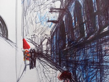 In diesem Werk habe ich versucht, die pulsierende Energie und das Chaos einer städtischen Szene mit dem Stift einzufangen. Die dynamischen, kräftigen Striche reflektieren das hektische Treiben der Stadt, während das Spiel mit Licht und Schatten eine tiefere, fast geheimnisvolle Dimension offenbart. Der rote Akzent hebt die Individualität in der Masse hervor, ein leuchtender Punkt in der urbanen Landschaft. Dieses Bild soll den Betrachter dazu anregen,… über die Beziehung zwischen Mensch und urbanem Raum nachzudenken.