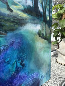 Öl, Ölkreide auf Leinwand