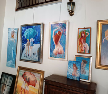 Jeder Pinselstrich erinnert an die wellenförmige Bewegung des Wassers und hüllt die Figur in ein Wasserballett. Es ist ein Fest der Natur, Weiblichkeit und Harmonie.…