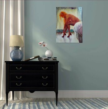 Dann gibt es dennoch eine Lösung, denn der Künstler arbeitet auch auf Kommission. Er kann stilistische Elemente, die Ihnen gefallen, in einem für Sie kreierten Werk einfließen lassen. Sie können dabei die Dimensionen bestimmen und wir verhandeln den Preis für Sie.