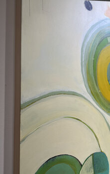 Derzeit im Ritz-Carlton Laguna Niguel zu sehen. „First Days of Summer“ ist ein Diptychon, inspiriert vom Sommerlicht an der südkalifornischen Küste. Acryl auf zwei Birkenholztafeln, jeweils 137 x 50 x 4,4 cm groß. Betrachtet man die Detailaufnahmen aus der Nähe, erkennt man Spuren dessen, was ich „die Geschichte des Gemäldes“ nenne – Stellen, an denen ich die Farbe aggressiv abgeschliffen und in mehrere Schichten zurückgekratzt habe, um eine geheimnisvolle… Mischung aus tiefen, satten Farben freizulegen. Das verwendete Birkenholz hält dem Schleifen der Farbe stand, wo die Leinwand mit Sicherheit reißen würde. Das Werk ist mit einem UV-geschützten Lack versiegelt und hält daher direktem Licht stand, falls Sie es an einem Ort aufhängen, an dem es einige Stunden Sonnenschein hat. Dieses Werk ist absichtlich nicht gerahmt. Die 4,4 cm tiefen Kanten lassen das Birkenholz frei und erzeugen so einen schönen Kontrast zwischen dem abstrakten Gemälde und dem Blick auf den natürlichen Untergrund.