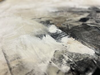 Kontraste sind wichtig, ebenso wie Konstanz. Der ständige Kampf um ein besseres Leben. Ein Schwarz-Weiß-Gemälde mit einigen Senftönen, ein organisiertes Chaos, Harmonie in der abstrakten Welt.