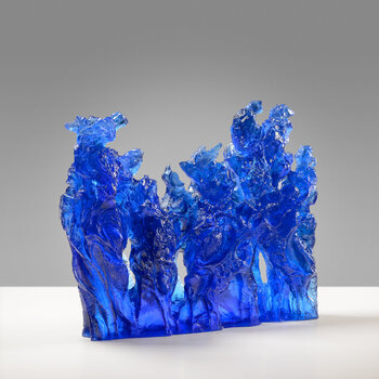 The Rocks of Navarino ist eine einzigartige, im Ofenguss gefertigte Glasskulptur, inspiriert von der monumentalen Küstenlinie der Navarino-Bucht, wie sie sich von den Hügeln bei Pylos zeigt.
