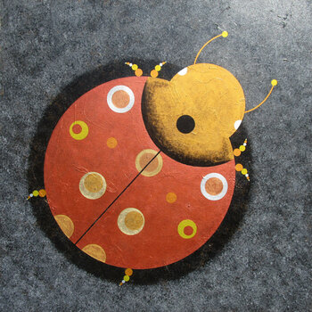 Insektogramm 4 - die Darstellung eines Insekts / Käfers nur durch die Nutzung von Kreisen - vereinfacht, symbolhaft und doch für uns klar erkennbar. Wie im Phänomen der Kornkreise. Mit stärker strukturiertem Hintergrund.