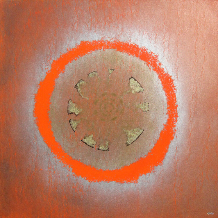 ich beschäftige mich mit seit einigen Jahren mit Klangschalenmeditationen und Konzerten. Dieses Bild ist eine Interpretation des Klanges der Schalen. Die auflösende, bröckelnde Struktur des Hintergrundes zeigt die Wirkung des Klangs der Schalen auf uns, das Freisetzen von Energien und Lösen von veralteteten Strukturen.