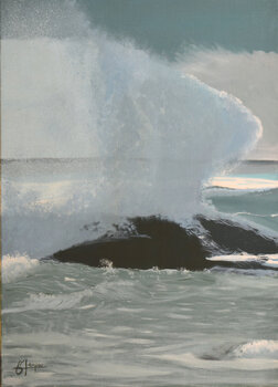Ich wollte die gewaltige Kraft des Meeres einfangen, wenn es in einer lebhaften Gischtfontäne explodiert. Jeder Pinselstrich vermittelt diese rohe Energie und den flüchtigen Moment, in dem das Wasser mit solcher Intensität freigesetzt wird. Dieses Kunstwerk lädt Sie ein, die ineinandergreifende Stärke und Ruhe zu spüren und Ihrem Zuhause eine lebendige und zugleich beruhigende Atmosphäre zu verleihen.