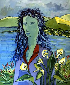 In diesem exzellenten Gemälde malt er uns auf einer Reise der Farbe und Sinnlichkeit, eine Frau eingebettet in eine Seenlandschaft mit Hügeln und Buchten, er malte sie in seinem Atelier nach einer Reise an den Comer See wie in Italien, in der er mehrere Zeichnungen anfertigte.