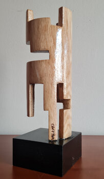 Diese Eichenholzskulptur vereint Kraft und Ausgewogenheit und versucht, die Essenz der Verbindung zwischen Räumen und Formen einzufangen. Ich wollte die gleiche kontemplative Energie vermitteln, die ich vor einem alten mittelalterlichen Wachturm oder Wachturm erlebte, der von der Zeit unberührt geblieben ist. Sie lädt dazu ein, sie aus verschiedenen Blickwinkeln zu betrachten und belebt die Umgebung mit ihrer natürlichen Wärme und ihren klaren Linien.