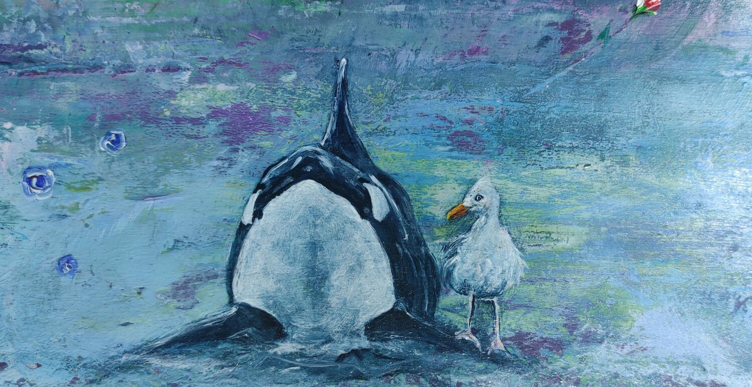 Jaio DosAnjos ist eine in Deutschland lebende Künstlerin aus Portugal, die ihre Bilder national, in Österreich und Deutschland ausgestellt hat. In ihren Arbeiten bemüht sie sich, die Schönheit und Kraft der Elemente durch Farben zu vermitteln. Sie zeigt jedoch auch andere persönliche Themen durch ihre Kompositionen. DosAnjos 'Serie mit dem Titel "Naufragio" (Schiffbruch) spiegelt ihre Kindheitserfahrung wider, als sie mit ihrer Familie aufgrund des Bürgerkriegs auf der Flucht aus Angola fast ertrunken wäre, was sich auch auf die aktuelle Flüchtlingsbewegung über das Mittelmeer bezieht.