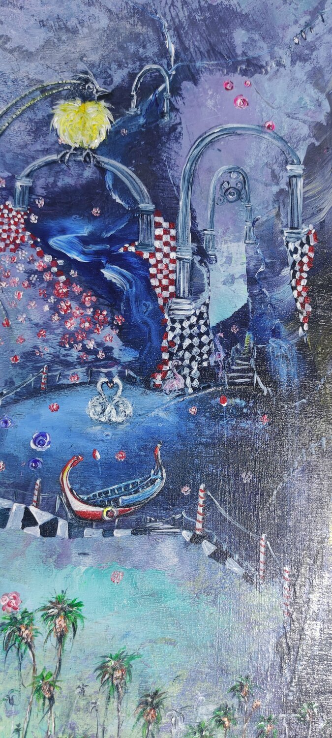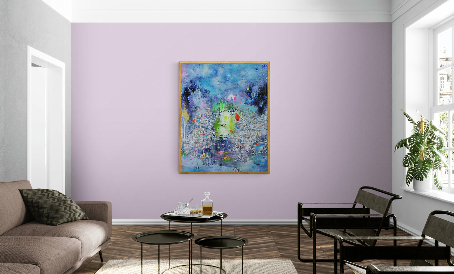 Dann gibt es dennoch eine Lösung, denn der Künstler arbeitet auch auf Kommission. Er kann stilistische Elemente, die Ihnen gefallen, in einem für Sie kreierten Werk einfließen lassen. Sie können dabei die Dimensionen bestimmen und wir verhandeln den Preis für Sie.
