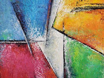 « Meine Bildvariationen von Farbe und Form in abstrakter Komposition schaffen Illusion von Räumlichkeit auf der Fläche, Experimentieren in Harmonie und Kontrast. »