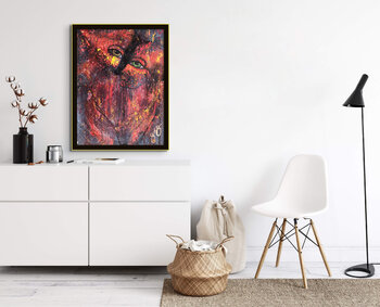 Bei der Schaffung dieses Stücks habe ich mich von meiner Leidenschaft für die tiefgreifenden Verbindungen zwischen Wesen leiten lassen. Die leuchtenden Acrylfarben auf Papier hauchen Leben ein und symbolisieren die feurige Essenz in uns, die ihr Gegenstück sucht. Die abstrakten Schichten repräsentieren die Komplexität der Verbindung, die Verflechtung von Seelen inmitten des Chaos. Es ist nicht nur ein visuelles Fest, sondern ein emotionales Leuchtfeuer,… das bereit ist, Wärme und Faszination in Ihrem Heiligtum auszustrahlen.