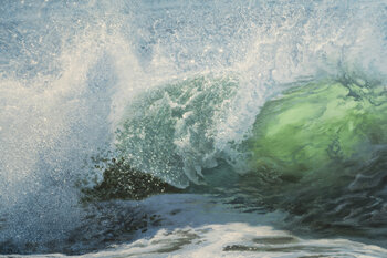 Bei dieser Gelegenheit fängt Javier Torices eine Welle des Atlantiks ein, in der die Stärke der Welle ebenso hervorsticht wie der Wind, der Tausende von Wassertropfen aufwirbelt. Es handelt sich um eine sorgfältige Arbeit mit unterschiedlichen Texturen.
