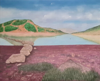Ich wollte die sanfte Harmonie zwischen Realismus und Impressionismus einfangen, in der jeder Pinselstrich die Natur mit leuchtendem Licht zum Leben erweckt. Diese Landschaft lädt zur Ruhe ein, eine visuelle Reise, auf der die Steine die Seele zu tiefem Frieden führen. Dieses Kunstwerk wird Ihrem Zuhause eine friedvolle Energie verleihen und ein Gefühl von Abgeschiedenheit und Kontemplation vermitteln.