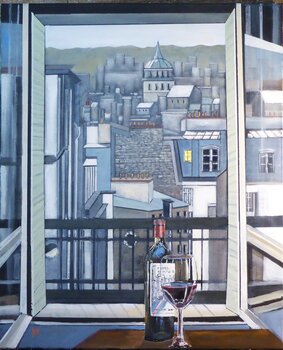 In dieser Ölarbeit stelle ich die Gelassenheit einer introspektiven Pause dar. Ich habe die Essenz eines privaten Moments eingefangen, der städtischen Kontemplation aus einem offenen Fenster mit Blick auf die Dächer von Paris. Die ruhige und dennoch lebendige Energie verwandelt jeden Raum und eröffnet ein Fenster der Träumerei und Ruhe.