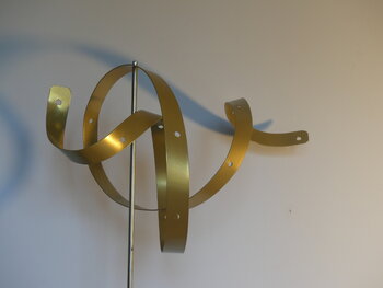 Diese Stahlskulptur ist epoxidlackiert und bei 200 Grad eingebrannt. Es… kann daher bei jedem Wetter draußen bleiben. Wer es aber im Sturm stehen lassen möchte, muss zunächst die Terrasse umbauen, die dann zu hell wäre... Sehr einfache Bedienung übrigens.