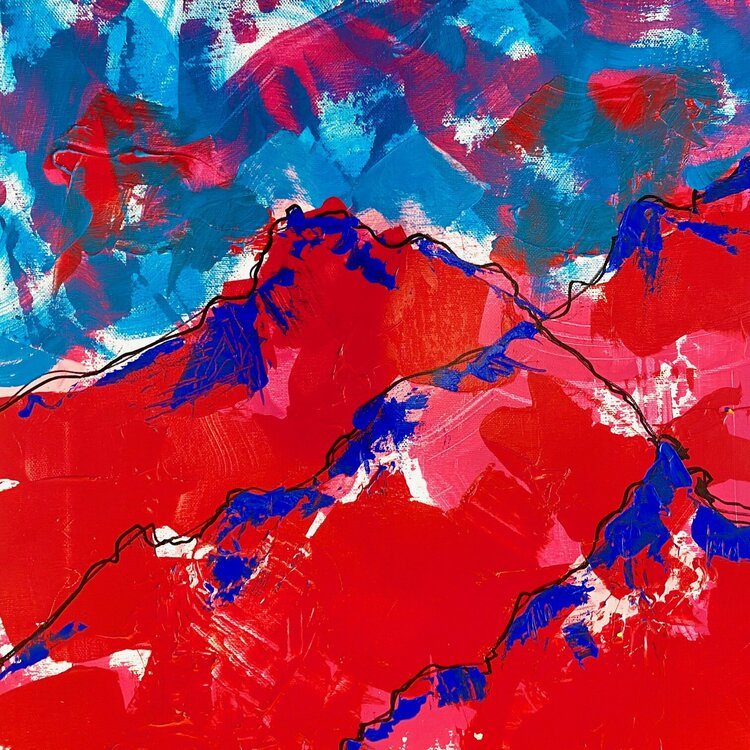 Dies ist die zweite in der aktuellen Serie (und würde perfekt mit der ersten in der Serie harmonieren), inspiriert von den Bergblicken vor Jennifers Fenstern in den Schweizer Alpen. Die weiten Ausblicke sind für sie eine ständige Inspirationsquelle, ebenso wie die wechselnden Stimmungen, die sie erzeugen können. Was auch immer die aktuelle Ansicht ist, das wichtigste zu erfassende Gefühl ist eine positive Stimmung und Aussicht und vor diesem Hintergrund… spiegelt die gewählte Farbpalette dies wider. Die gestische Abstraktion liefert den Impuls, das Bild auf der Leinwand zum Leben zu erwecken.