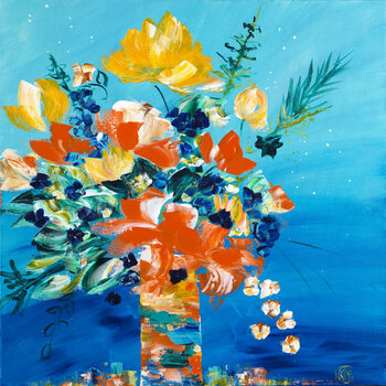 Deshalb dringen meine Blumensträuße und Blumen in den Rahmen des Gemäldes ein, manchmal überquellend und explodierend wie ein Lebensimpuls." Joelle Kem Lika