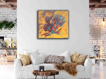 Dieses Bild ist eine kraftvolle Explosion roher Emotionen in Acryl. Ich habe absichtlich primitive, fast rohe Formen gewählt, um das Urgefühl von Freiheit und Instinkt auszudrücken. Die lebendige Gelb- und Blautöne bringen Energie und Lebendigkeit in jeden Raum, sie beleben das Ambiente und laden zum Nachdenken ein. Es ist mehr als nur ein Bild – es ist ein lebendiger Dialog zwischen Seele und Farbe.
