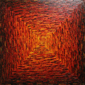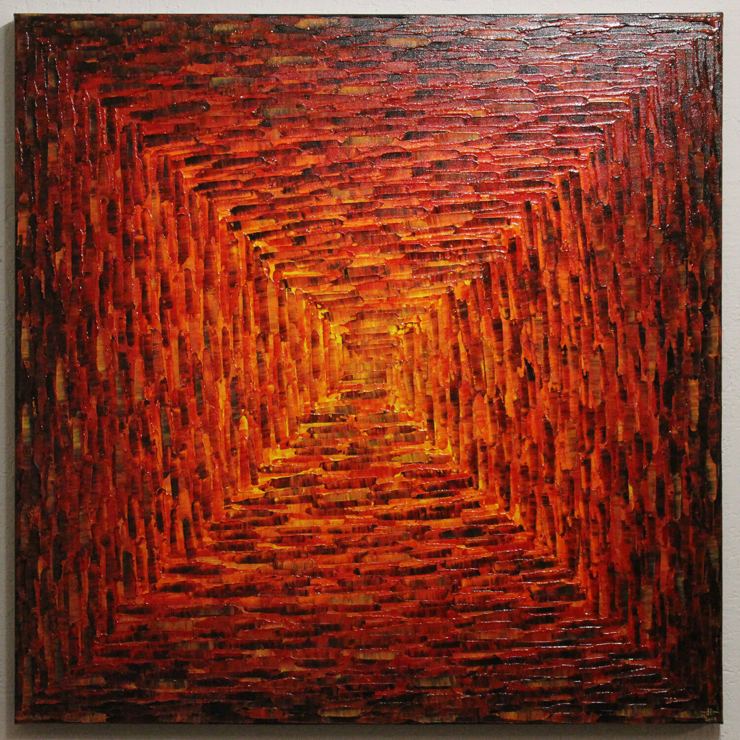 Abstrakte Malerei auf Leinwand | Großer warmer quadratischer Farbverlauf